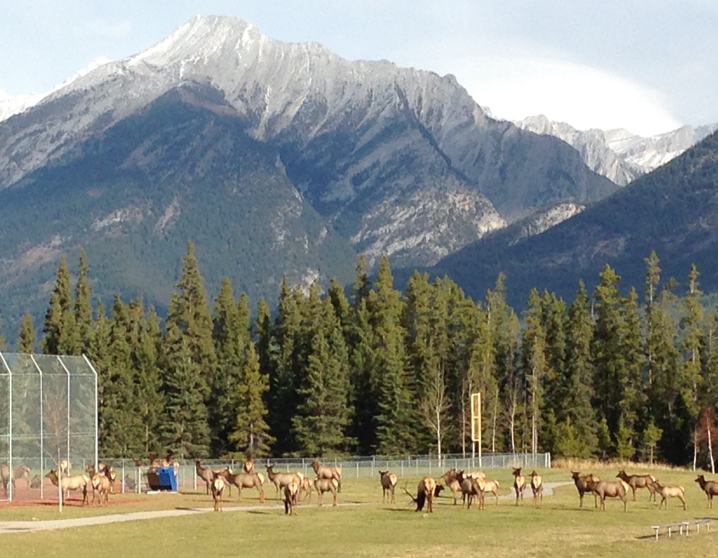 And people do encounter bears around Canmore. The closure of the Peaks of Grassi subdivision was prompted by a fortunately not too serious encounter between a birdwatcher and a bear near the Powerline Trail. And it’s not just bears. The school run is always more fun and interesting when we encounter coyotes or elk, as is often the case:
