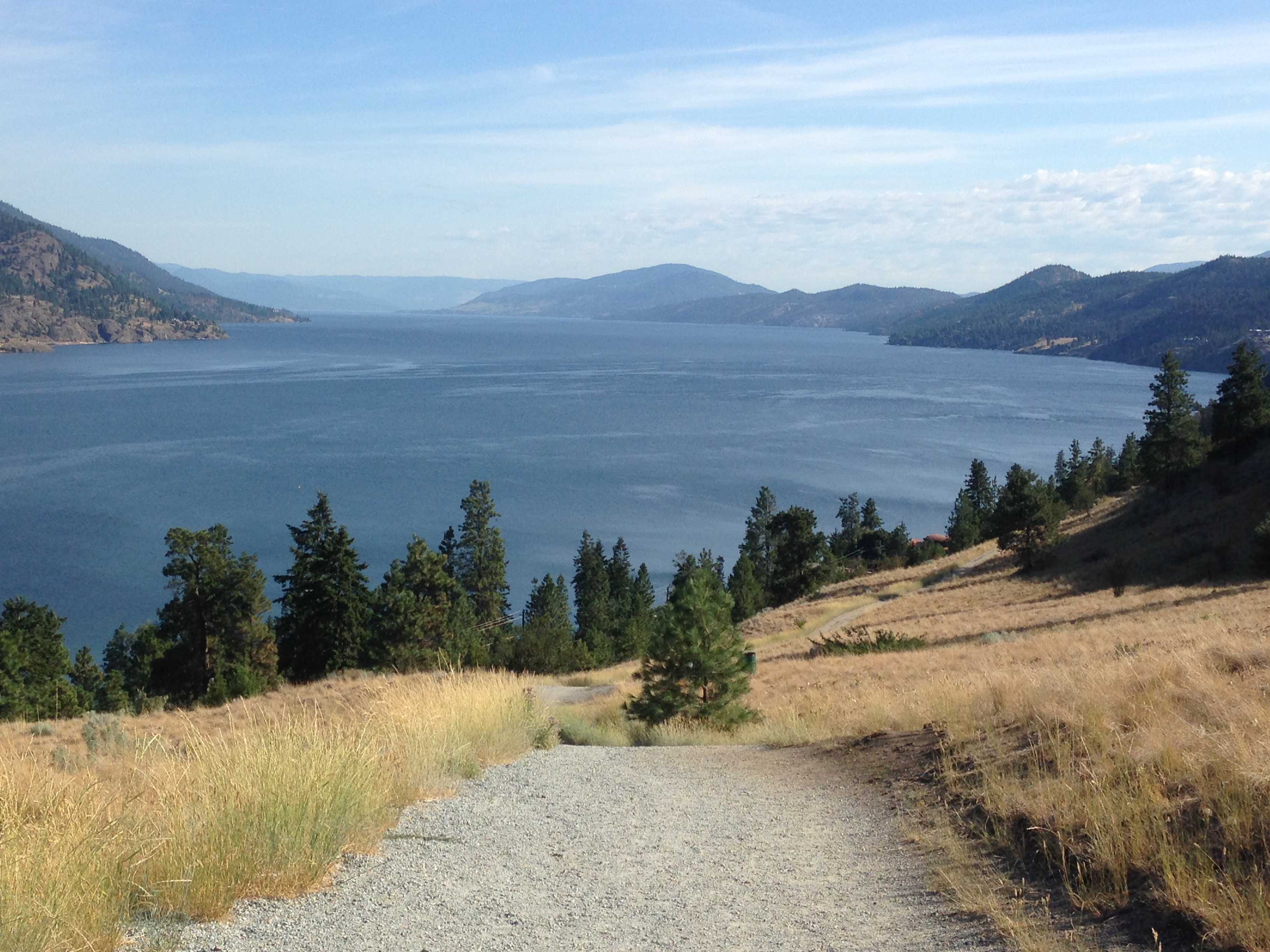 This is the beginning of a great, dusty 1km climb with some nice switchbacks. Keep heading up, taking in the views of Kelowna and the Okanagan as you go: