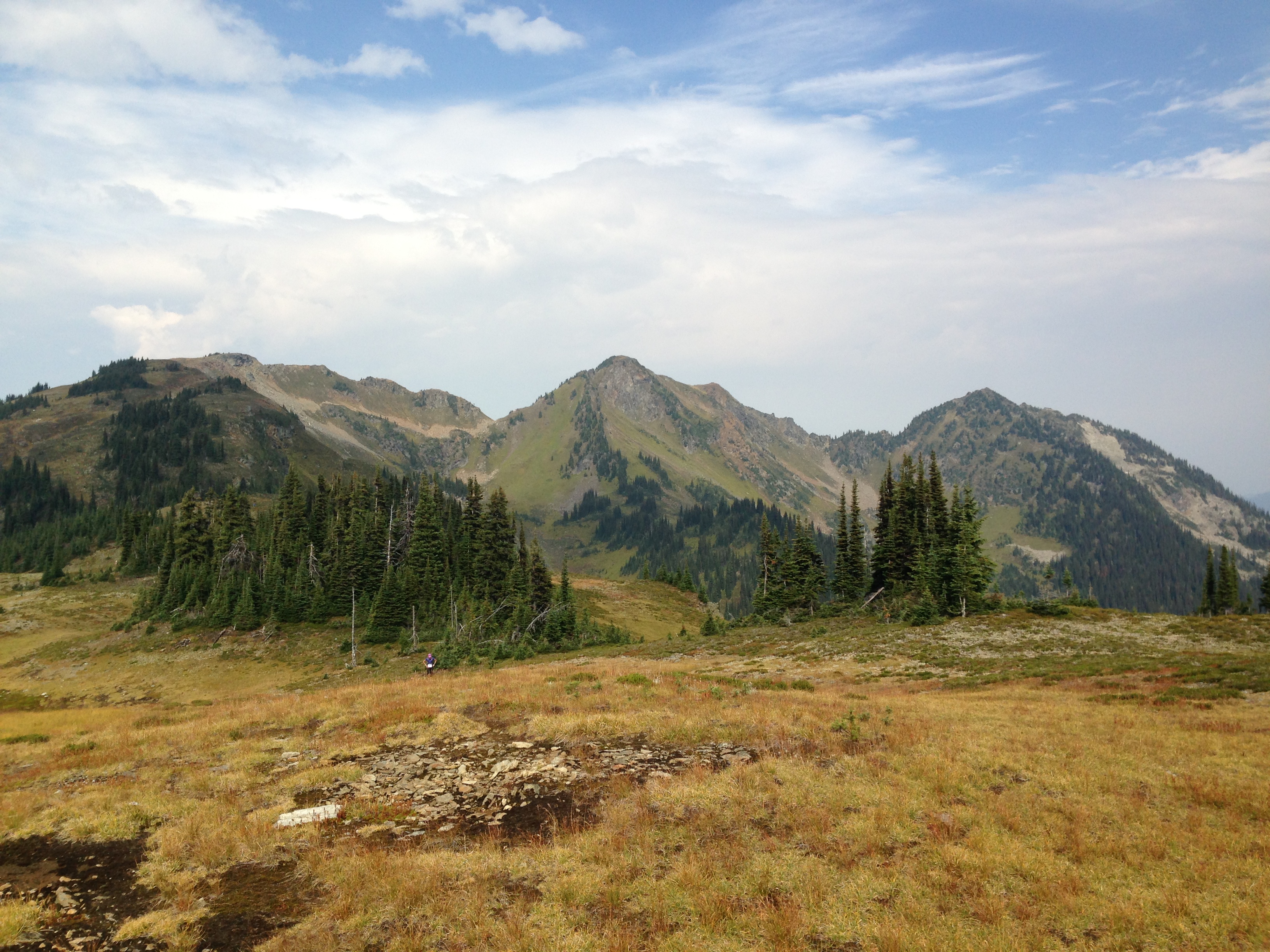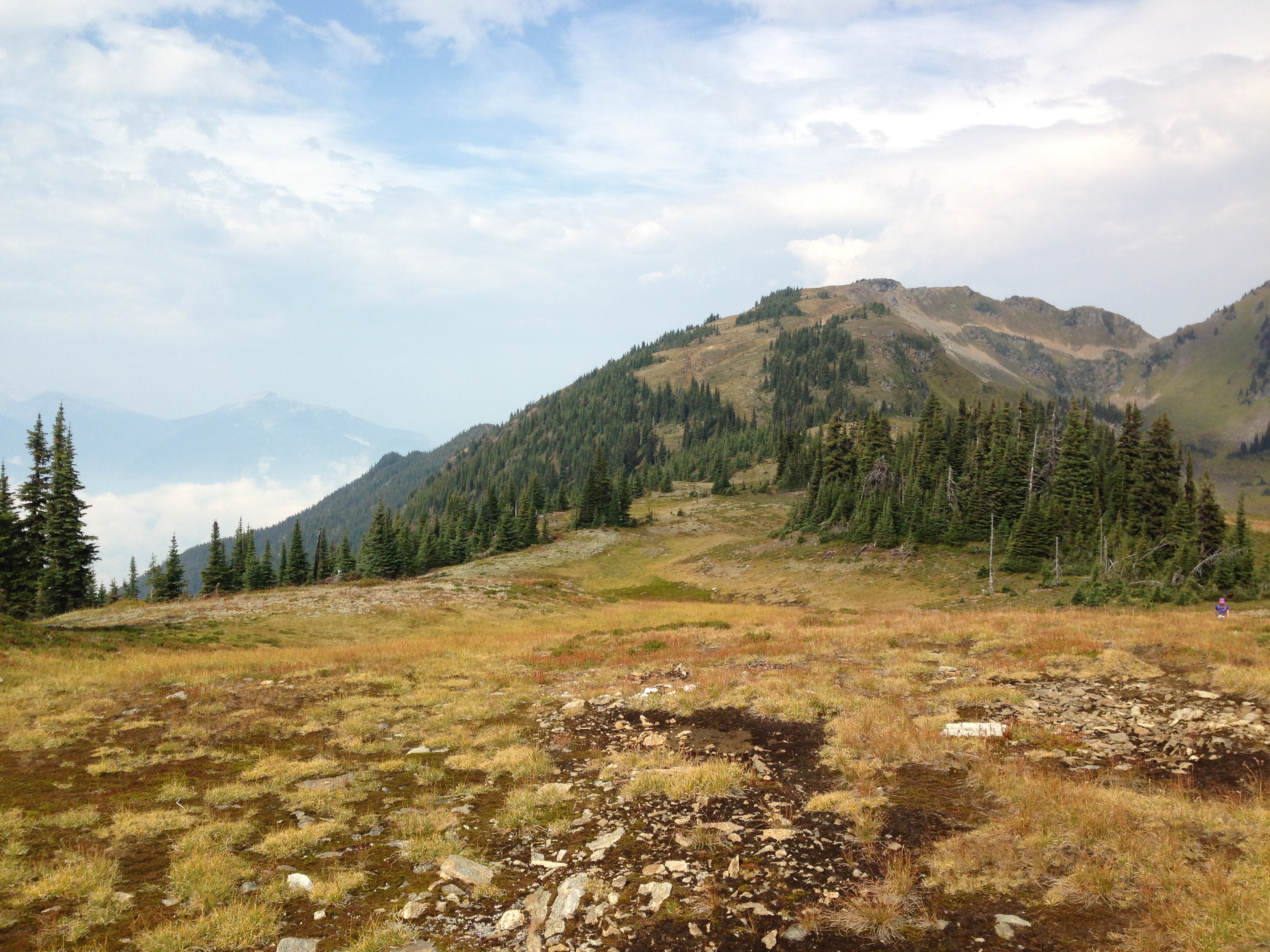 The second leg was described as a “ridge run” though the reality was 6-7km of boggy, shoe-sucking forest trails and steeper, more exposed rocky trails that led you up to the high point of the course at 2,289m. From there it was a short drop down to Kokanee Ridge, after which it was a further 2km to the turnaround point. As luck would have it, the clouds lifted as runners began to hit the ridge revealing some truly spectacular views: