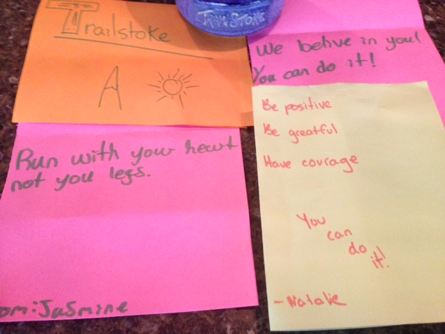 …to Ms. Canmore Runner and the Canmore Trail Culture crew for helping make the experience so special; and to the race director Amy Golumbia and her family, in particular her daughters Jasmine and Nathalie for their awesome and inspiring handwritten notes that we all received in our race packages: