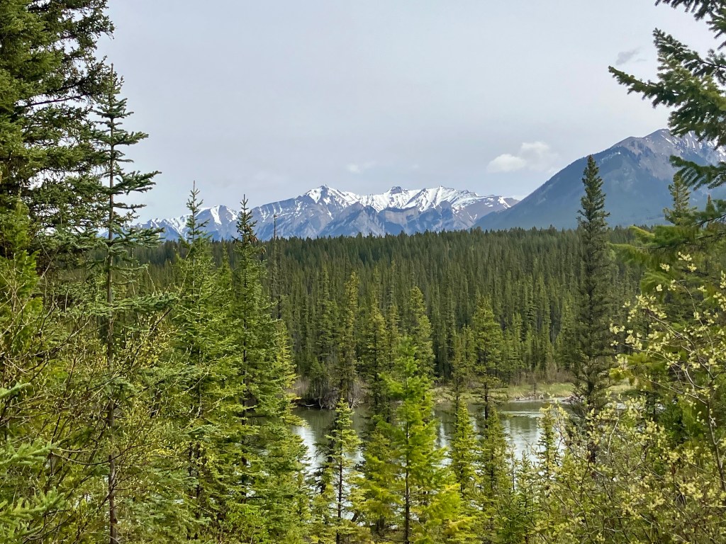 But as nice as it would be to slip into autopilot and flow along the Riverside trail, it’s also a root strewn hell for the first few kilometres. The good news is that you’re not missing much in terms of views as you concentrate on avoiding roots and rolling an ankle. It’s not until around the 14km mark that the views start to come with occasional glimpses of Mount Rundle to the left…